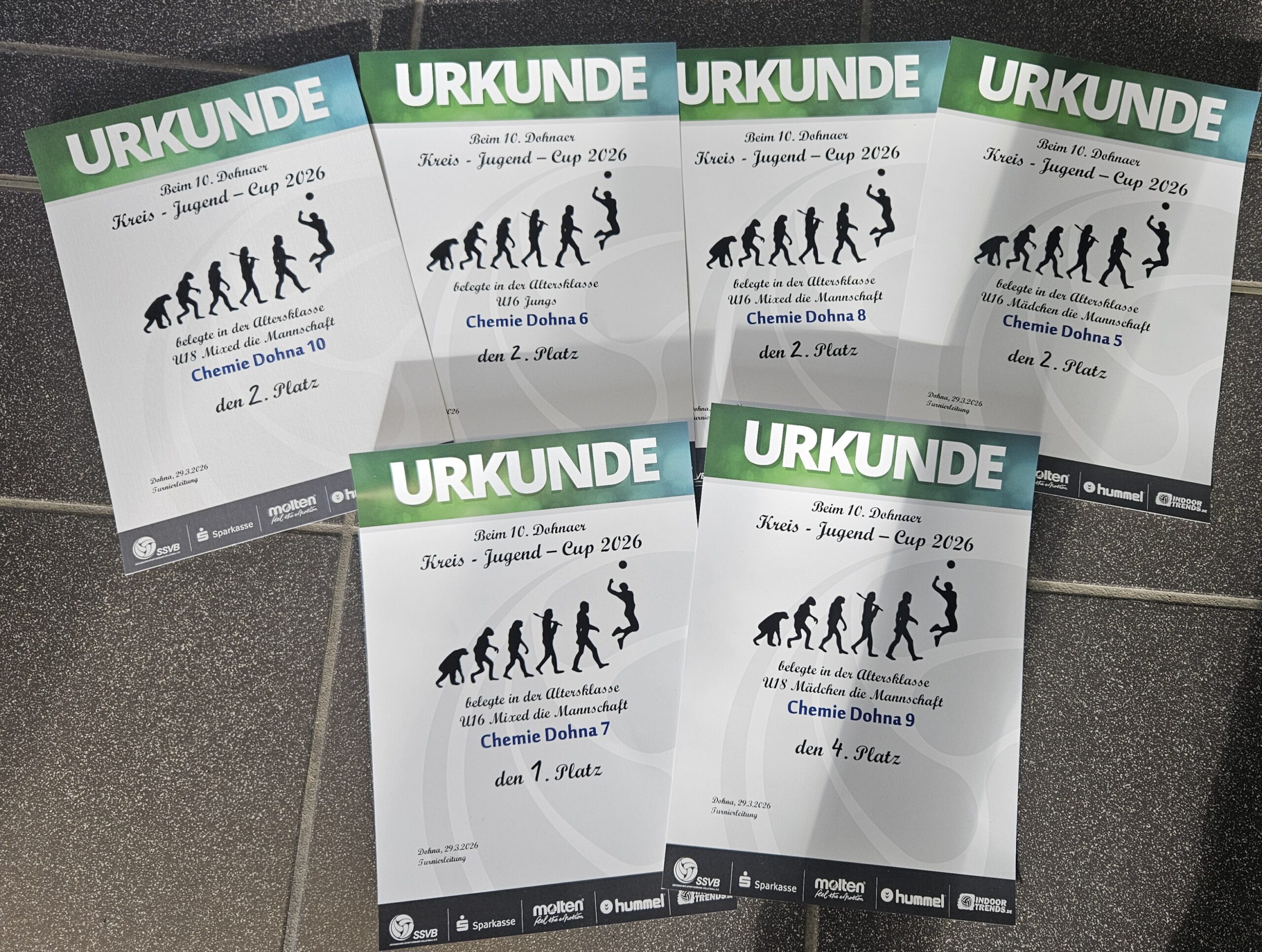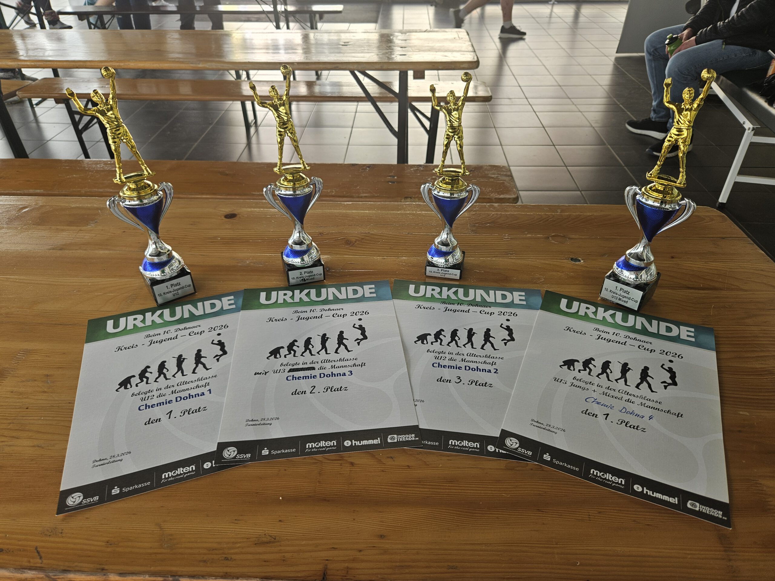 Die Damenmannschaft folgte am 18.01.25 der Einladung der Volleyballerinnen aus Niederbobritzsch zu deren Turnier. Das Pokalturnier fand zum 11ten mal statt und die Dohnaer Volleyballmädels traten als Cupverteidiger an. Gleich das erste Spiel wurde zur großen Herausforderung, hatte man doch erst zwei Tage vorher gegen die Mohorner Mannschaft knapp gewonnen. Konzentriert wurde das Spiel angegangen und anders als in Mohorn, ließen die Damen den Gegnerinnen keine Chance und gewannen souverän das Spiel. Getragen von diesem ersten Erfolg wurden alle weitern Spiele ebenfalls verlustpunkfrei gewonnen. Damit bleibt der Pokal ein weiteres Jahr in Dohna – Herzlichen Glückwunsch im Namen aller Vereinssportler, Rolf T.