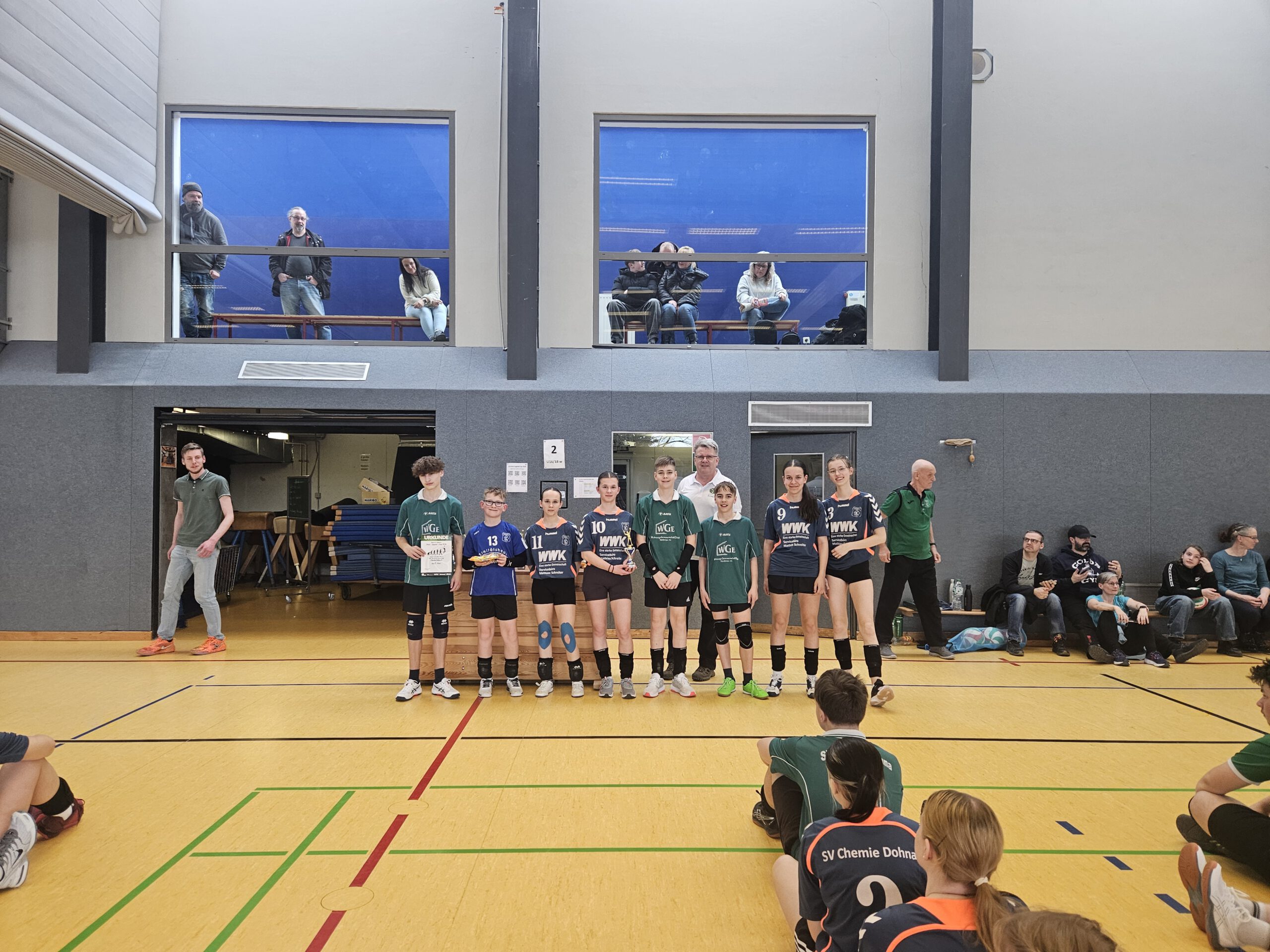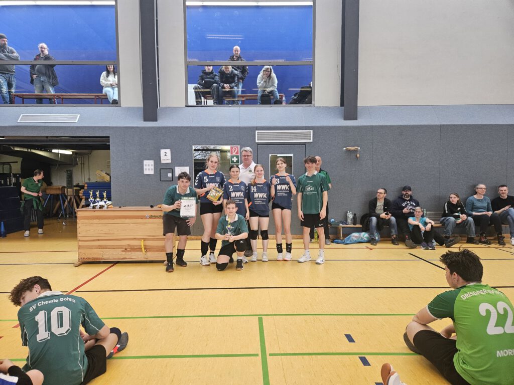 Auch der SV Chemie Dohna war wieder einmal mit zwei Mannschaften vertreten – und diese sorgten in diesem Jahr für eine ganz besondere Geschichte. Denn neben erfahrenen Spielerinnen und Spielern standen erstmals zahlreiche Jugendliche auf dem Feld, die in den vergangenen Monaten aus dem Nachwuchsbereich in die Damen- und Herrenmannschaften aufgerückt waren. Für viele von ihnen war es eines der ersten Erwachsenenturniere überhaupt. So trafen „alte Volleyballhasen“ auf blutjunge Talente, von denen einige gerade einmal 14 Jahre alt waren – eine Mischung, die den besonderen Charme des Turniers ausmachte.